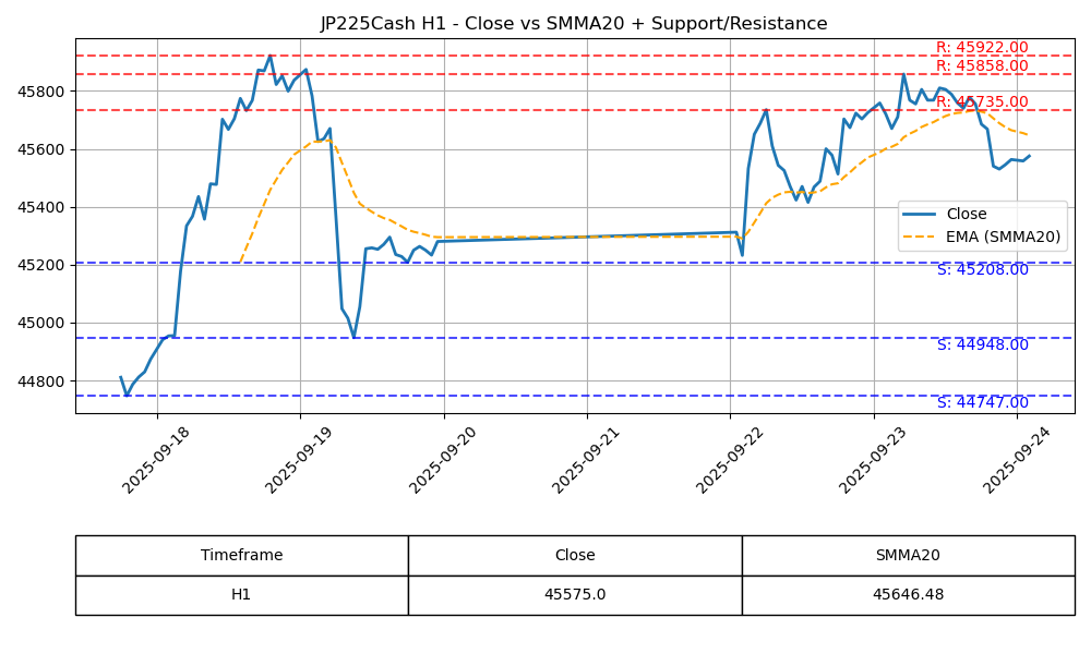 📊 JP225Cash テクニカル分析と予測 | FX市場レポート(2025-09-24 08:45)
