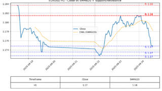 📊 EURUSD テクニカル分析と予測 | FX市場レポート(2025-09-24 15:30) EURUSD の今後の見通しとチャート傾向 指標要約(M5〜H4) 【トレンド・モメンタム系】 TimeframeSMMA20MACD...
