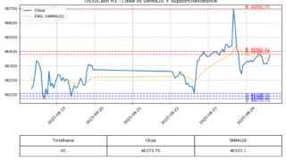 📊 US30Cash テクニカル分析と予測 | FX市場レポート(2025-09-24 21:31) US30Cash の今後の見通しとチャート傾向 指標要約(M5〜H4) 【トレンド・モメンタム系】 TimeframeSMMA20...
